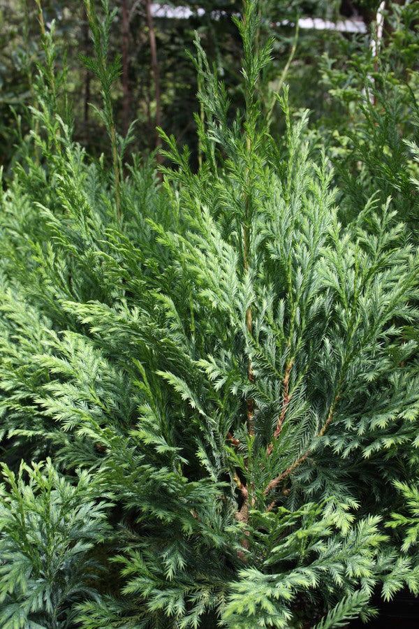 (aka: Callitropsis, Hesperocyparis, Cupressus vietnamensis) Xanthocyparis vietnamensis is a distant cousin of the Western US Callitropsis nootkatensis with an identity crisis. Vietnam cedar is a monotypic (there's only one) genus, discovered in 1999, growing on the karst limestone mountains in the Hà Giang Province in northern Vietnam. Since there are less than 1000 plants in the wild, Xanthocyparis vietnamensis is one of the worlds' rarest and most endangered conifers, so we hope you'll be a part of the ex-situ conservation effort to preserve this. Eventually to 30'+, the foliage resembles a thujopis at maturity, although the juvenile foliage is quite feathery. DNA taxonomists have bounced it around like a tennis ball from Xanthocyparis to Callitropsis, to Hesperocyparis, to Cupressus, and now back to Xanthocyparis. We have limited quantities of cutting grown plants, but let's not have an all out war...hope we've learned that history lesson.