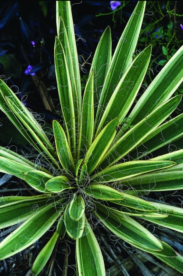 Yucca filamentosa 'Variegata' is one of the finest variegated selections of our native deer-resistant Yucca filamentosa var. concava, and the only one with truly white variegation. The hairy leaves of Yucca filamentosa 'Variegata' are green with a stunning creamy white margin that remains bright all year on the 18" tall x 2' wide upright clumper. The 5' tall stalks of tall white bell-shaped flowers appear in late spring. This is often offered as Yucca 'Ivory Towers', which is a different green-foliaged yucca. Our friend and brilliant plant taxonomist Larry Hatch has so far traced this amazing cultivar back to 1812.