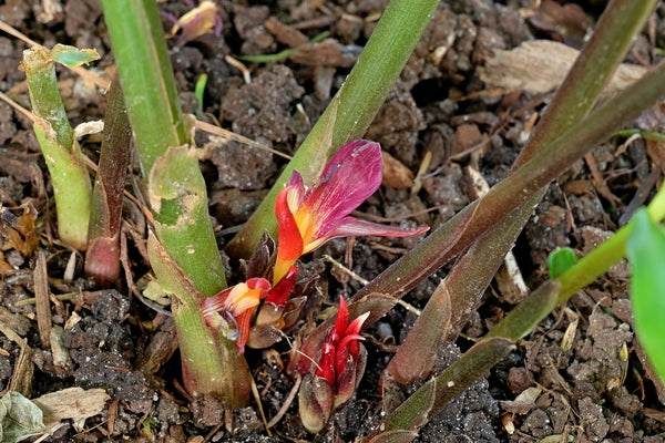 We're always on the lookout for new winter hardy gingers, and our prayers were answered in 2008, as we descended Taiwan's Ali Shan and spotted a massive forest of ginger lilies growing alongside giant bamboo, underneath a massive forest of cryptomerias at 5,300' elevation. The 30" tall gingers are adorned with clusters of small basal-produced, bright red flowers from September until a hard freeze. The clumps spread slowly in our climate, resulting in a 3' wide patch in ten years. It's only taken us twelve years to bulk up enough to finally share as a 2021 Plant Delights/JLBG introduction.